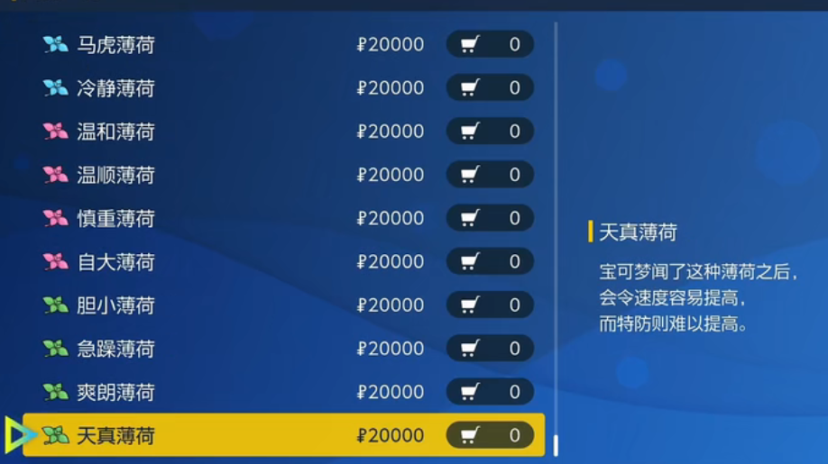 4、最后拉到最下面就是所有的性格薄荷了,根据自己需求购买即可。