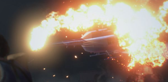 6、通过车库电梯上到天台后,没想到直升机被暴君击毁。