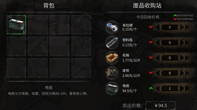 3、偷到电瓶后就可以将电瓶卖给收废品的人,可以注意电瓶的价格,如果太低了我们可以等到价格高了之后再卖,因为电瓶比较重,一次最多带一个,还可以携带其他的一些东西,所有一次偷一个就好,不要贪心。