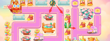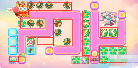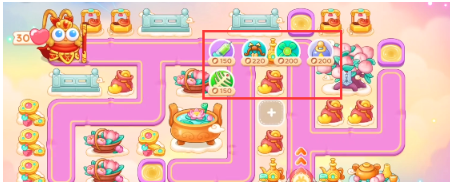 3、有金币之后补上风扇,继续打下面和右边障碍物,空出的位置放置风扇。