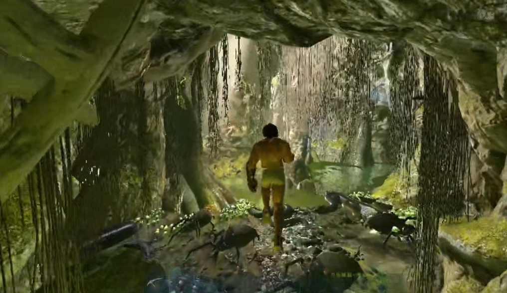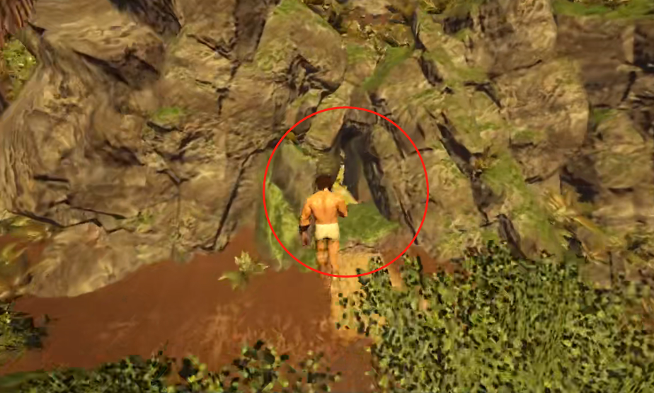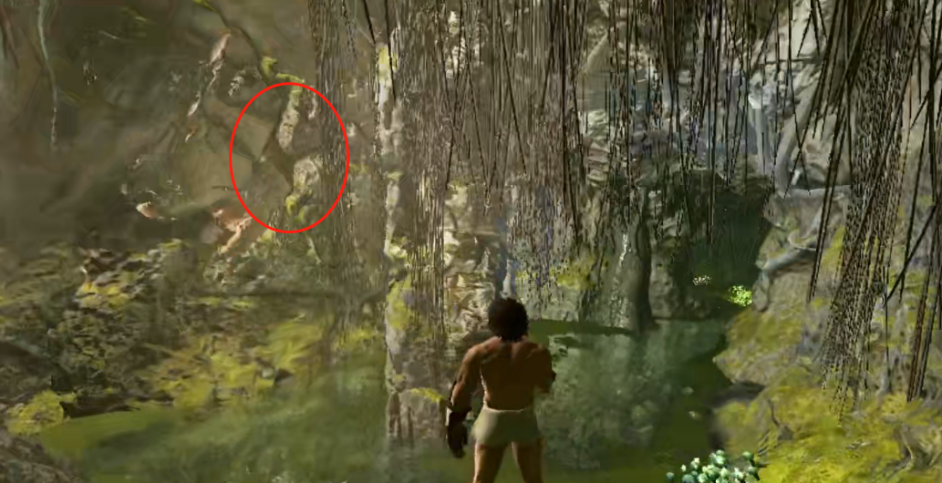 1、进入洞穴后贴着右边墙壁一直向前,来到如图所示的位置。