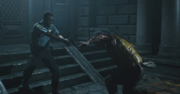 2、在警局门口看到警官马文将变成丧尸的布莱德射杀,自己却不幸被咬。