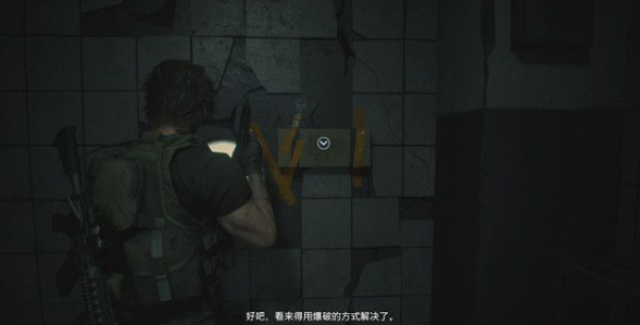 6、上到二楼淋浴室用电池将墙上的雷管安装好,即可将墙炸开。