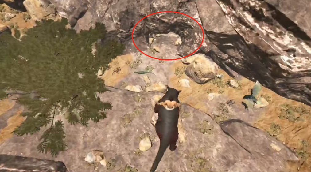 4、这里选择走左边,沿着峭壁旁的石头走过去。