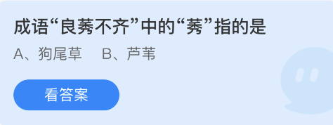 动作格斗11月24日的蚂蚁庄园小课堂其中一个问题是:成语“良莠不齐”中的“莠”指的是?不少小伙伴还不知道问题答案,那么下面小编就为大家带来了蚂蚁庄园11月24日正确答案,感兴趣的快来看看吧。