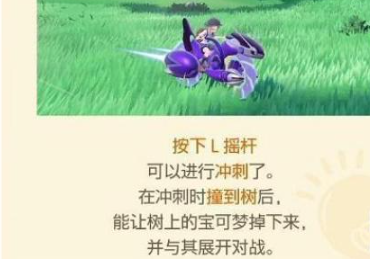 7、冲刺方法:按住摇杆L就可以冲刺,冲刺过程中撞树可以让树上的宝可梦掉下来。