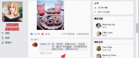 4、根据网页上女主角的信息再使用大数据就能找到她的其他信息,主要是姓名和hitalk账号。