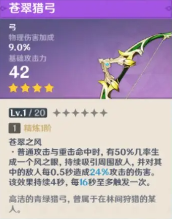 以上便是小编为大家带来的原神苍翠猎弓满级属性介绍,该武器比较适合温迪、达达利亚、菲谢尔。相信看完以上内容现在你已经了解到了苍翠猎弓的属性,更多武器属性敬请关注大三软件站。