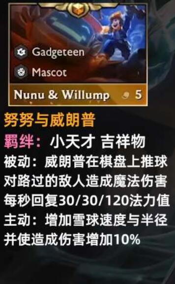 动作格斗云顶之弈新赛季即将到来届时也将迎来新的五费卡,努努与威朗普成为了五费卡之一,许多小伙伴想要了解他,那么接下来为大家分享关于努努与威朗普的技能介绍,感兴趣的小伙伴们快来跟我一起看看吧。
