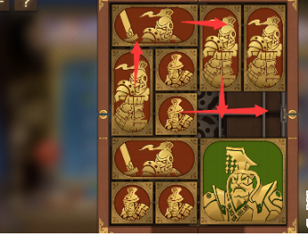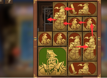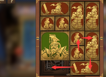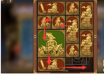 4、左下角的正方形向右移动,将军向下移动,其上方的正方形竖直排列为长方形,中间的长方形向左移动。