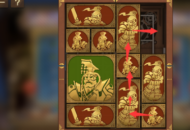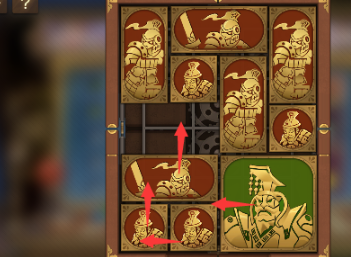 8、将军上方的两个正方形向右并竖直排列为长方形,将军向上一格,右下角的长方形向左移动。