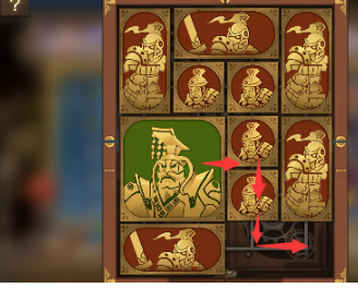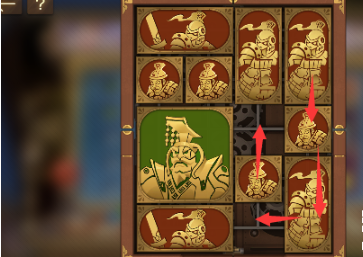 3、右上方的长方形向右移动,其下方的所有图形向上移动到底,右下角的正方形向左然后向上移动。
