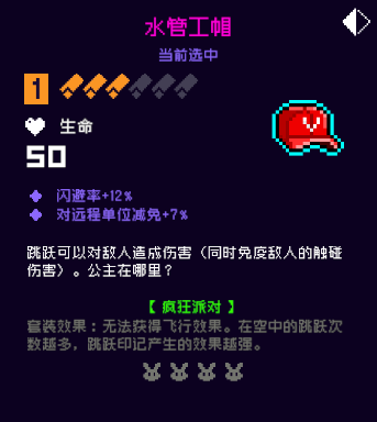 动作格斗在游戏霓虹深渊无限中有各种各样的的纪念品,它不仅能够在属性上有所加成而且还具有独特的效果,水管工帽是橙色纪念品之一,带上这个纪念品之后不仅可以使用跳跃踩人造成伤还能免疫碰撞伤害,接下来就为大家介绍一下,感兴趣的小伙伴快来看看吧。