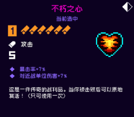 效果:这是一件传奇的战利品。当你被击败后可以原地复活(只可使用一次)。