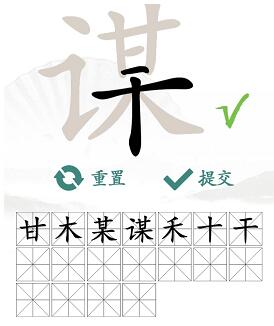 1、第一行,从左到右的字分别为【甘、木、某、谋、禾、十、干】。