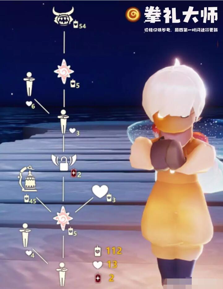 以上就是光遇2月9日复刻先祖攻略,兑换图上所有物品兑换需要112蜡烛兑换全部获得,先祖就在禁阁四楼上面的移动平台上,希望能够对你有帮助。