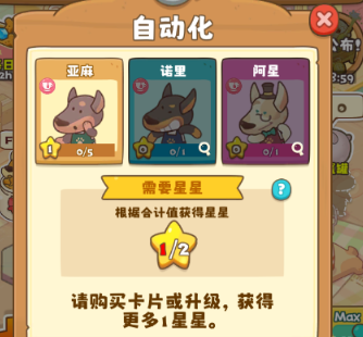 3、灰色的需要给员工升级或者雇佣新的员工,凑够星星点数,才可以开启自动化。