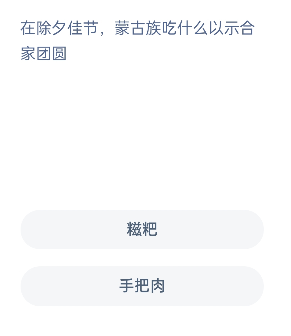 问题:在除夕佳节,蒙古族吃什么以示合家团圆?