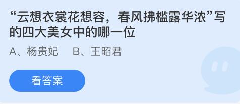 问题:“云想衣裳花想容,春风拂槛露华浓”写的四大美女中的哪一位?