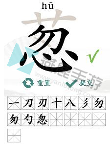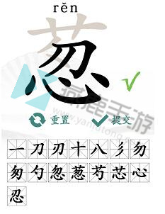 3、最后可以观察整体,并把下面的部分当作偏旁进行组合,可以找到(心、忽、葱、芍、芯、忍),这样就可以过关了。