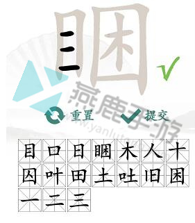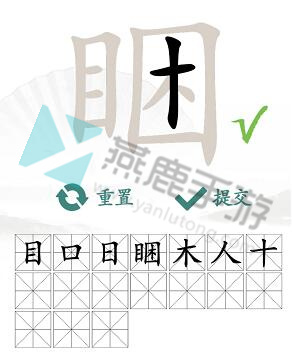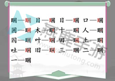 根据所给字“睏”从中找出17个常见字(目、口、日、睏、木、人、十、囚、叶、田、土、吐、旧、困、一、二、三)