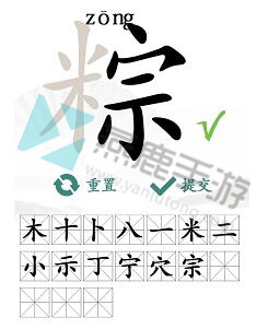 根据所给字“粽”从中找出18个常见字(木、十、卜、八、一、米、二、小、示、丁、宁、穴、宗、标、柠、粽、棕)