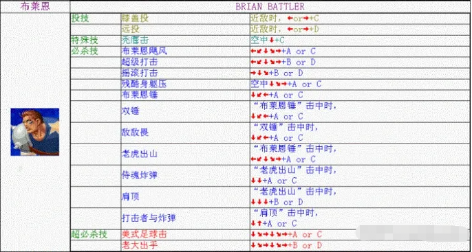以上便是小编为大家带来的拳皇98布莱恩·巴特勒出招表的所有内容了,希望可以帮助到大家更好的使用布莱恩·巴特勒这个角色。