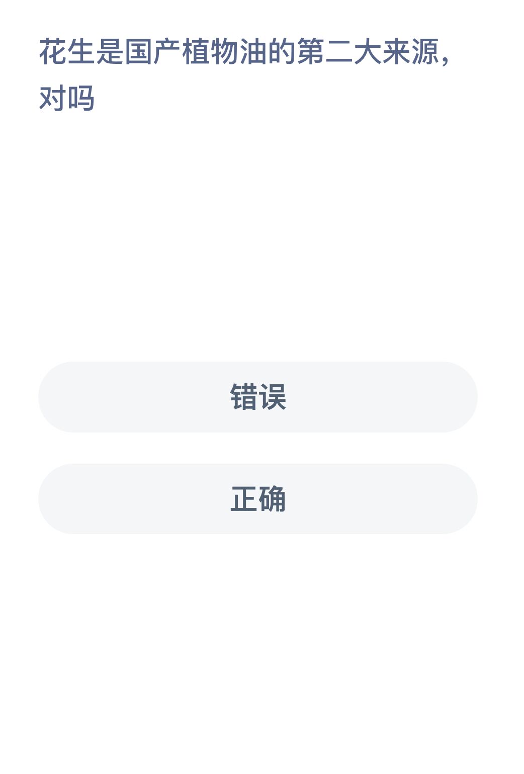 动作格斗蚂蚁新村小课堂3月2日的其中一个问题是:花生是国产植物油的第二大来源对吗?相信很多小伙伴也不清楚,下面一起来看一下蚂蚁新村3月2日的正确答案吧。