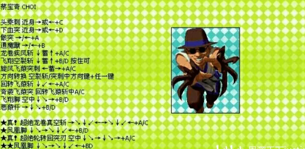 以上便是小编为大家带来的拳皇2000蔡宝奇出招表的所有内容了,希望可以帮助到大家更好的使用蔡宝奇这个角色。