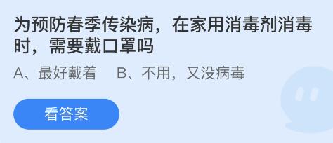 问题:为预防春季传染病,在家用消毒剂消毒时,需要戴口罩吗?