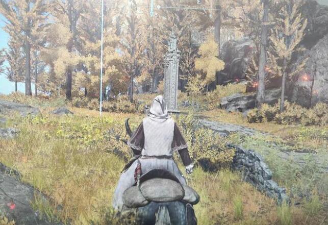 3、然后在关卡的旁边激活福赐,会看到本作的防火女,会获得马,接着前往废墟里面,点击营地里的石碑,获得地图碎片:宁姆格福(西),开启新地图。