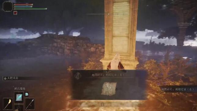 8、找到学院门前镇赐福点,石碑旁边,获得【地图碎片:利耶尼亚(北)】,开启新地图。(拉斯卡废墟赐福点,要去激活,后面有用)