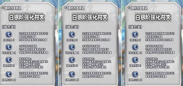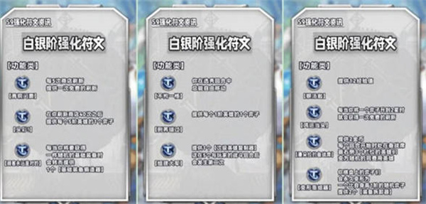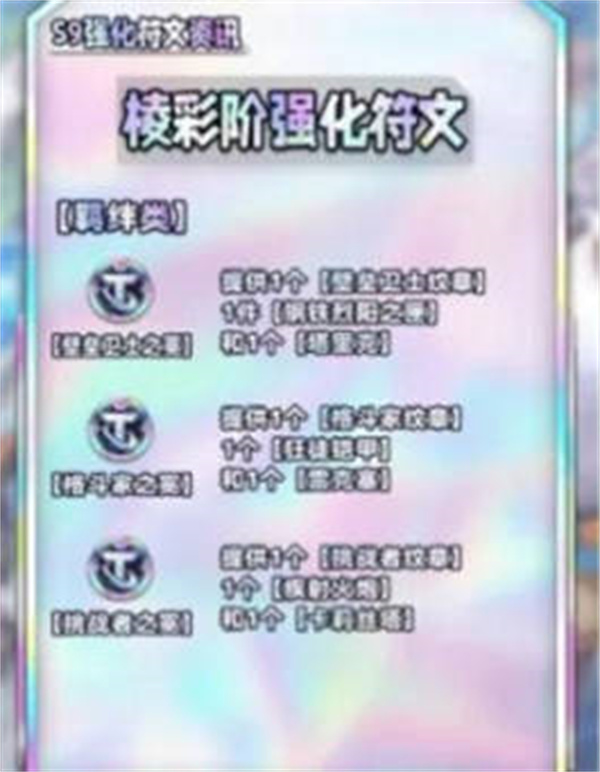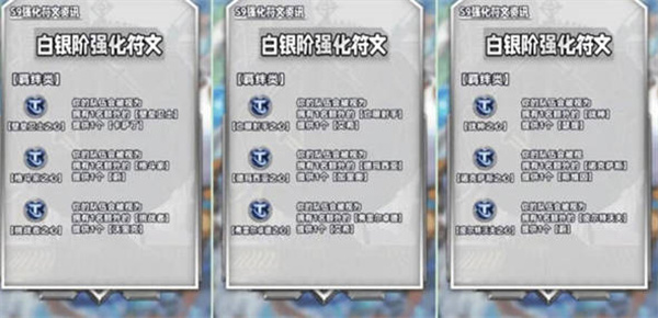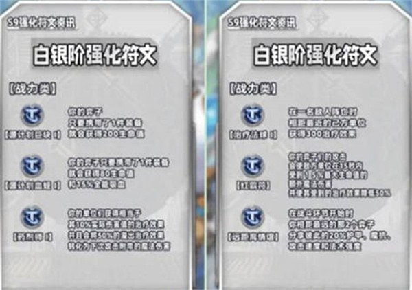1:银色海克斯强化,功能类:青铜门票、头彩、顾客永远是对的、不拘一格、别再错过、组建大军、银汤匙、鸿运当头、潘朵拉的备战席、变形重组器,羁绊类:壁垒卫士之心、格斗家之心、挑战者之心、亡眼射手之心、德玛西亚之心、弗雷尔卓德之心、战神之心、诺克萨斯之心、皮尔特沃夫之心、潜行者之心、暗影岛之心、恕瑞玛之心、杀手之心、法师之心、战略家之心、巨神峰之心、虚空之心、祖安之心,经济类:胜负看淡、冒险举动、血红金币、黑铁资产,战力类:源计划巨块1、源计划血蛭1、药剂师1、治疗法球1、红霸符、远距离情谊、纯天然1、社交距离1、联合抵抗1、挂件之迅1、纯天然1、社交距离1、联合抵抗1、挂件之迅1、纯天然1、社交距离1、联合抵抗1、挂件之迅1;
