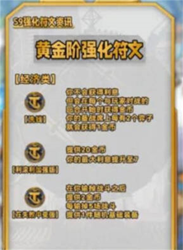 2:金色海克斯,功能类:闪着金鳞、多变锻炉、主打一个陪伴、继续开D、见贤思齐、中端购物、投资收益、边逛边偷、白银门票、不稳定的约德尔配送、果决、刀下取金、背水一战、打捞桶、三费小组、参天巨人的坚决、金鳞发明家,羁绊类:壁垒卫士之徽、挑战者之徽、格斗家之徽、亡眼射手之徽、德玛西亚之徽、费雷尔卓德之徽、枪手之徽、神谕者之徽、艾欧尼亚之徽、战神之徽、多重施法者之心、诺克萨斯之徽、皮尔特沃夫之徽、潜行者之徽、暗影岛之徽、恕德玛之徽、杀手之徽、法师之徽、战略家之徽、巨神峰之徽、虚空之徽、约德尔人之心、祖安之徽,经济类:洗钱、利滚利加强版、在失败中变强,战力类:早期教育、陨落赠礼、肾上泉激素、纯天然2、防御型冲刺、爱心祷告、炼金科技义体、减益传播、源计划巨块2、源计划血蛭2、恶魔耀光、精英耐久、耐久训练、冰川微风、药剂师2、阴森甲壳、治疗法球2、理想主义、不屈意志、灌注、了解你的敌人、远距离情谊2、殉道者、晨曦、不是今天、老人的拐杖、过载的法力源泉、完美重复、贪欲猎手、哨兵之灵、恕瑞玛的传承、杀手的坚决、行家里手、社交距离2、枪斗术、天角的赐福、火力压制、战术优势、霸王、三费成众、成吨的属性!、泰坦之力、全面主宰、二费活力、联合抵抗2、战争罡风、吾弓断命于您、吾剑断命于您、施法即是防御、卓尔不群2、好事成双2、万用瞄准镜、法力燃烧、冻到爆炸、虚空行走;
