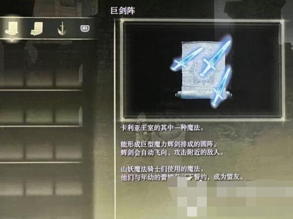 动作格斗在艾尔登法环游戏中巨剑阵是一个非常适合法师前期过渡的法术,不过很多小伙伴都不清楚这个法术应该怎么获取,下面为大家带来了艾尔登法环巨剑阵获取方法,一起来看看吧。