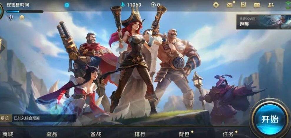 1、进入英雄联盟手游主界面,点击右下角的【开始】。