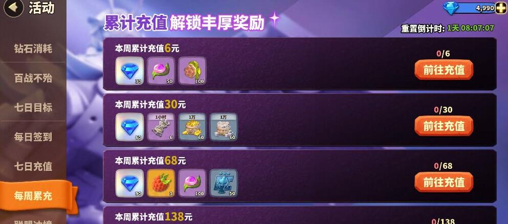 1、通过日常活动积累到很多砖石和丰裕的金币;
