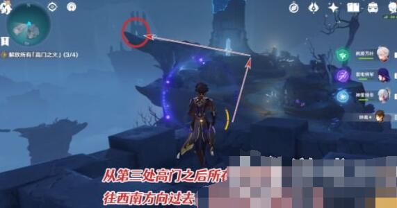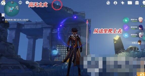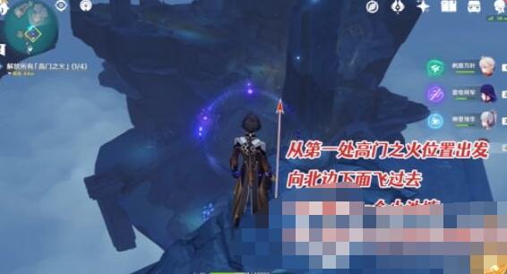 3、第2处高门之火位置往西北方向悬崖边的石柱走,就能看到高门之火了,第三处高门之火就在石柱上。