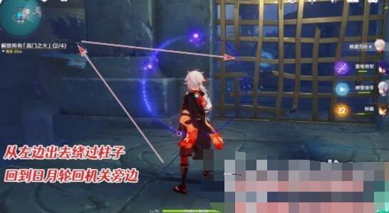 4、在第三个高天之火的位置,往西边直走右转,会看到黄色的三角机关,会看到残缺的机关,回到日月轮回机关,然后把时间调整常夜,然后在回到残缺机关处,就能触发第四处高门之火了。