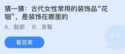 动作格斗在蚂蚁庄园小课堂3月8日的问答中其中的一个问题是:古代女性常用装饰品花钿是装饰在哪里的?相信很多小伙伴也不清楚,下面一起来看一下蚂蚁庄园3月8日的正确答案吧。