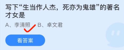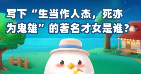 动作格斗在蚂蚁庄园小课堂3月7日的问答中其中的一个问题是:写下生当作人杰死亦为鬼雄的著名才女是?相信很多小伙伴也不清楚,下面一起来看一下蚂蚁庄园3月7日的正确答案吧。