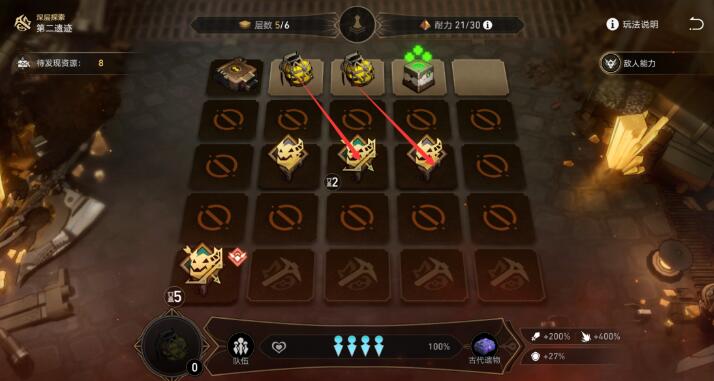 5、遗迹力场·第5层。暗箭难防:具有突袭能力的敌人,会根据你的行动发起损耗耐力值的攻击。