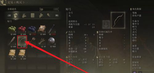 3、点击弓箭,然后消耗600卢恩,即可购买这个武器。