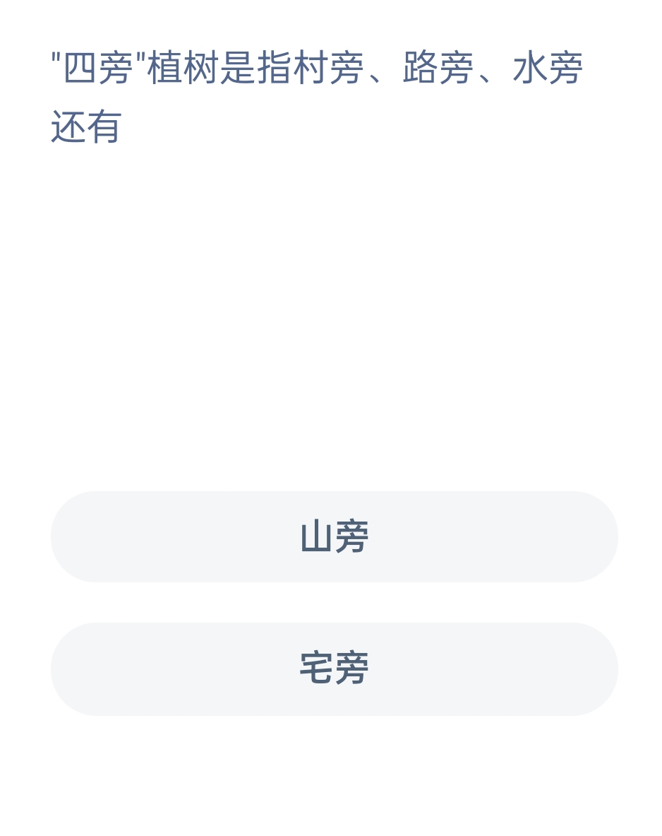 蚂蚁新村小课堂2月21日的其中一个问题是:〝四旁"植树是指村旁、路旁、水旁还有?相信很多小伙伴也不清楚,下面一起来看一下蚂蚁新村2月21日的正确答案吧。