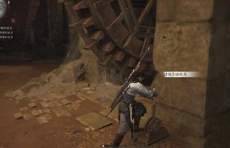 4、一直跟随升降台下去后到达平地后打开机关接着向下去。