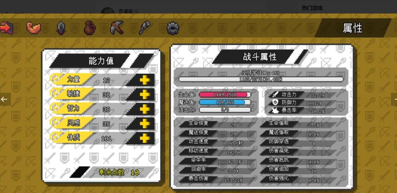 2、加点方面:加少量敏捷(用于提高弓武器的适配度),其余全体质