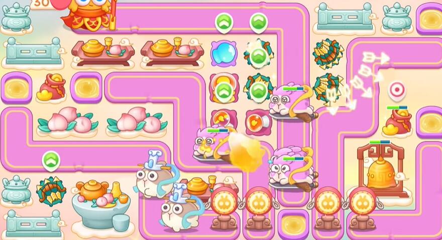 2、钱袋打掉之后继续建立多重箭,打桃子。
