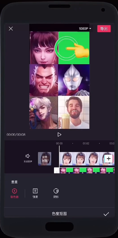 第五步:最后选择色度抠图,去掉拼图里面的绿色,添加音乐即可。