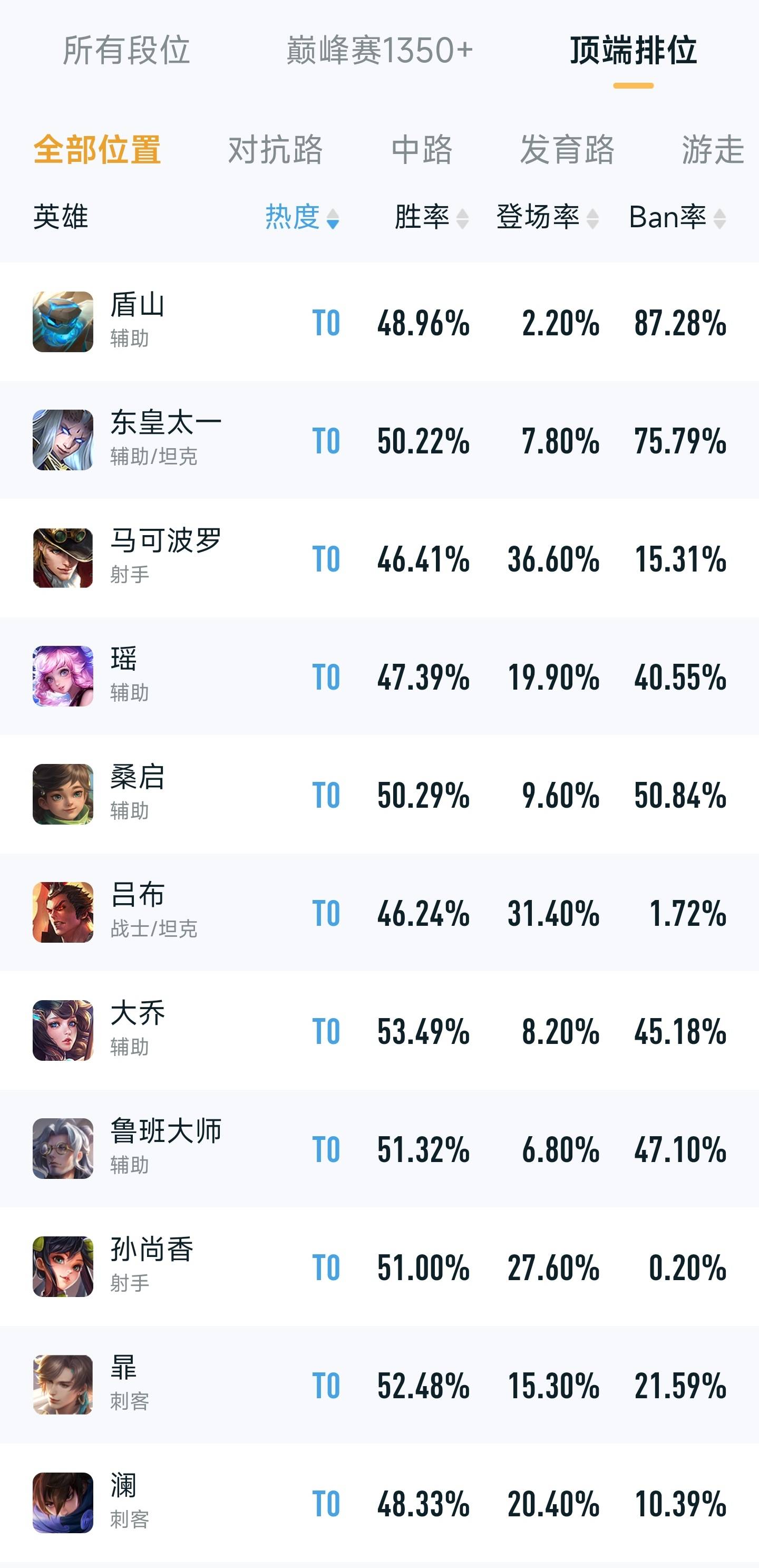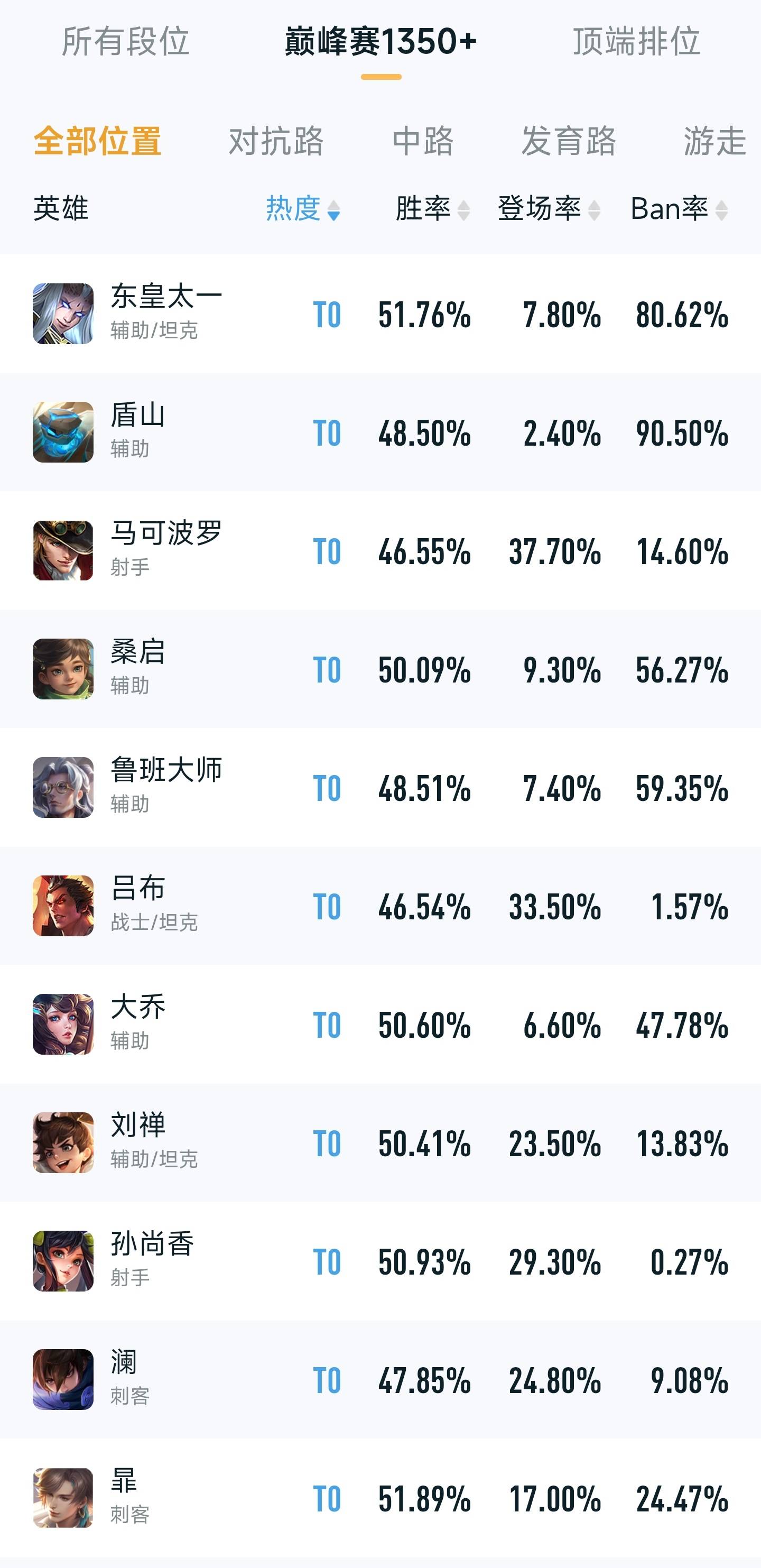 T0.5:大乔、盾山、太乙真人、鲁班大师、东皇太一