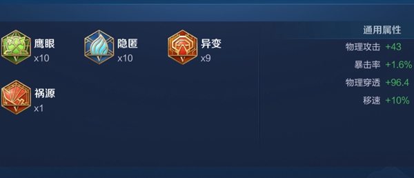 4、第二套铭文搭配:9异变+1祸源、10隐匿、10鹰眼